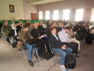 Началось мероприятие общей молитвой. Открыли собрание благочинный Параскево-Пятницкого округа протоиерей Анатолий Кожа и руководитель секретариата Юго-Западного викариатства иерей Александр Зорин. Было отмечено, что целью собрания стало распределение средних общеобразовательных школ ЮЗАО между храмами для дальнейшей работы с учебными заведениями, участия в выборе предмета «Основы православной культуры».