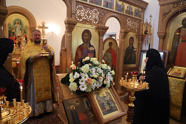 В этот праздничный день в обители было отслужено две Божественных литургии: ранняя для сестер – в Анастасиинской церкви и поздняя для прихожан – в Троицком соборе.