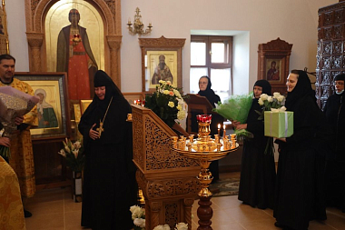 Затем духовенство, сестры и прихожане монастыря поздравили матушку игумению с днем тезоименитства.
