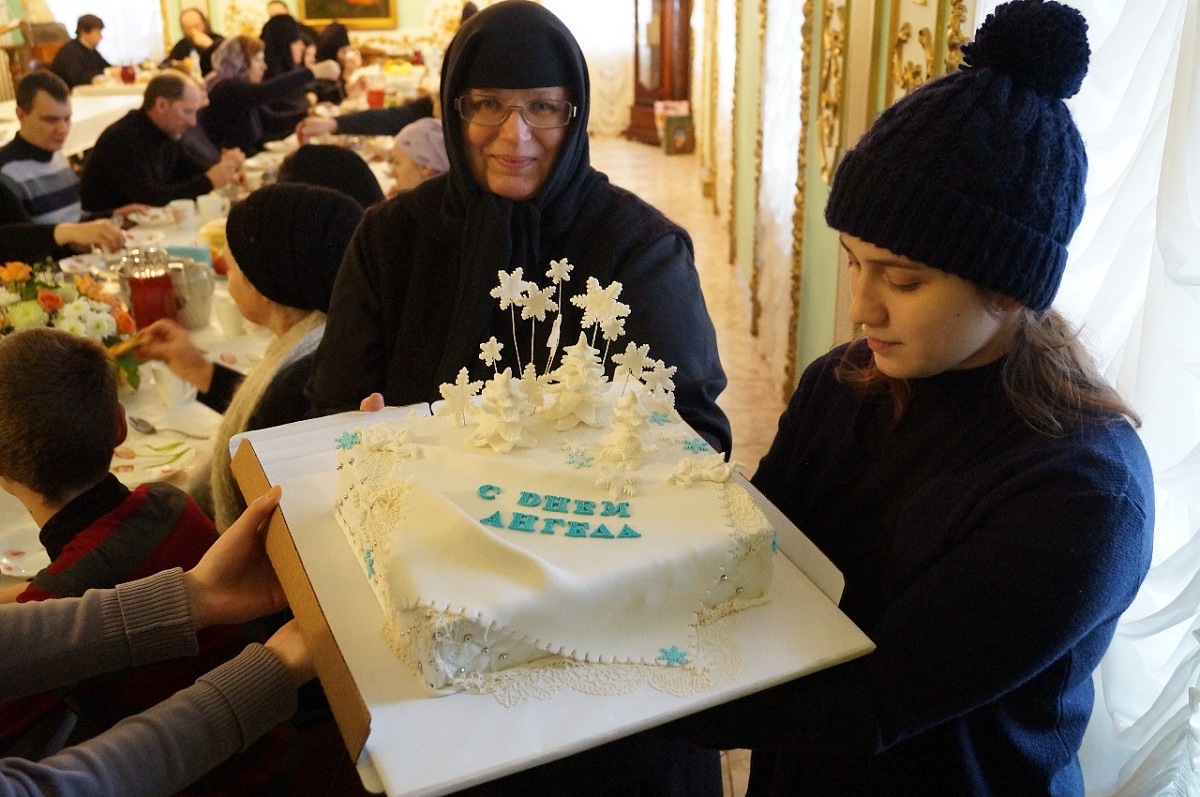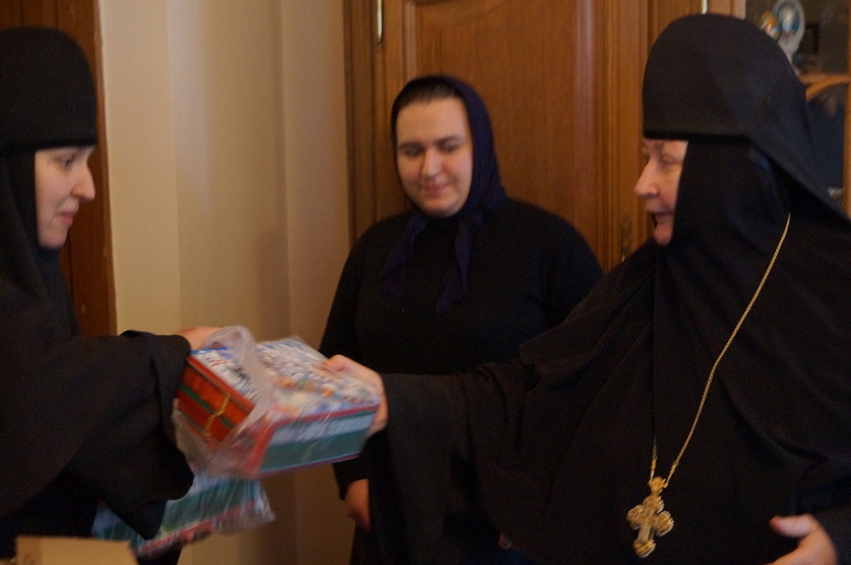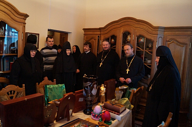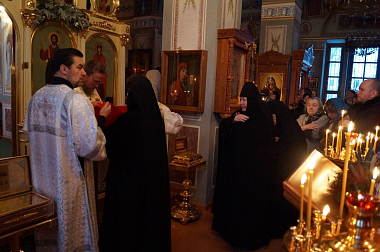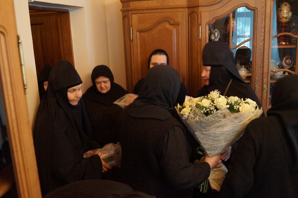 Затем духовенство и сестры монастыря в игуменских покоях поздравили настоятельницу обители игумению Марию (Солодовникову) со светлым праздником Рождества Христова.