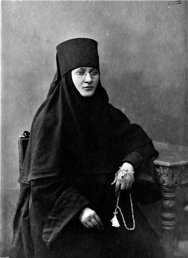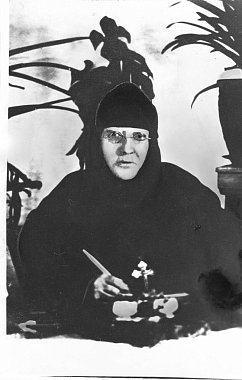 Матушка Алипия, как знали ее в монастыре – схиму она приняла уже в изгнании, – по свидетельству архивных данных, родилась в 1869 году в Ставрополе, происходила из черкесской семьи, рано осиротела. В юных летах она поступила в новооткрытый Бодбийский монастырь в Грузии, где заведовала живописной и чеканной мастерской, обучая молодых послушниц искусству иконописания. Вероятно, благодаря своему художественному таланту она получила в монашеском постриге имя первого русского иконописца преподобного Алипия Печерского. В Бодбийском монастыре она близко сошлась и духовно сдружилась со своей ровесницей монахиней Ювеналией (Марджинашвили), ныне прославленной Православной Церковью как преподобноисповедница схиигуменя Фамарь (Марджанова). Матушка Ювеналия вскоре стала игуменией Бодбийской обители, а в 1905 году указом Святейшего Синода переведена в Москву и назначена настоятельницей Владычне-Покровской женской общины милосердия. Вскоре по ее просьбе из Грузии вызывают монахиню Алипию, получившую должность казначеи Покровской общины. Это было грандиозное учреждение, территория которого занимала не один гектар земли; в его попечении находились несколько больниц, военный госпиталь, амбулатория, аптека, богадельня детский приют, общеобразовательная и фельдшерская школы, рукодельные мастерские, даже плантация тутовых деревьев с шелковичными червями при школе шелководства. В должности казначеи монахиня Алипия помогала и в строительстве Серафимо-Знаменскоо скита. В 1917 году ее направили настоятельницей во вновь образованную общину в Троице-Лыкове, однако уже на следующий год переводят игуменией в овдовевший Аносин Борисоглебский монастырь. На плечи матушки Алипии легли нелегкие заботы о сохранении монашеского уклада в условиях антицерковной политики властей. Не забывала она и своих духовных друзей, поддерживала схиигумению Фамарь в ссылке, после закрытия Серафимо-Знаменского скита многих сестер приняла в Аносино, здесь же нашел приют и гонимый властями епископ Дмитровский Серафим (Звездинский). В эти годы Аносино стало значимым центром духовной жизни, куда направляли своих чад известные духовники, среди которых московские старцы протоиерей Алексий Мечев и архимандрит Геогрий (Лавров), здесь находили утешение и вдохновение представители церковной интеллигенции как, например, А.Ф. Лосев или С. Мансуров, именно в Аносине написавший значительную часть «Очерков из истории Церкви» и благодаря опеке матшки игумении принявший священный сан.