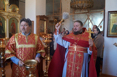 Позднюю Божественную литургию возглавил старший священник обители иеромонах Адриан в сослужении монастырского духовенства. За праздничным богослужением молились сестры Свято-Троицкого Корецкого ставропигиального женского монастыря в сопровождении монастырского священника.