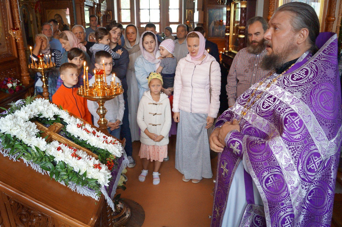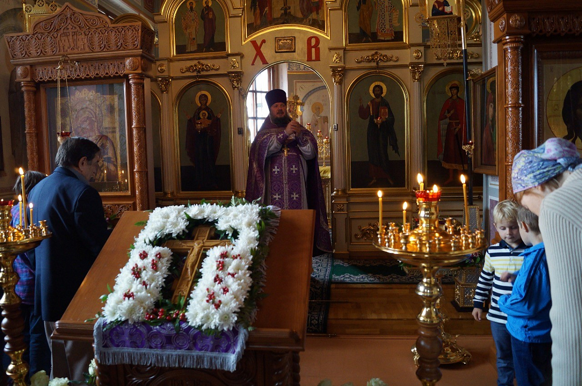 Накануне за вечерним богослужением на утрене во время пения великого славословия украшенный крест был вынесен священнослужителем в центр храма, чтобы каждый желающий мог поклониться святому кресту Господню.