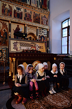 За богослужением молились настоятельница монастыря игумения Елисавета (Жегалова), насельницы обители, воспитанницы монастырского детского приюта «Ковчег».