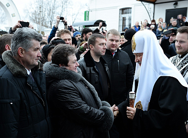 По окончании богослужения игумения Елисавета приветствовала Святейшего Владыку и преподнесла Его Святейшеству икону Божией Матери «Отрада и Утешение», написанную сестрами обители.