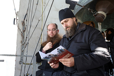 Наместник Данилова монастыря архимандрит Алексий (Поликарпов) вручил памятные сувениры людям, чье участие в деле возвращения Даниловских колоколов в родную обитель было наиболее значимым.