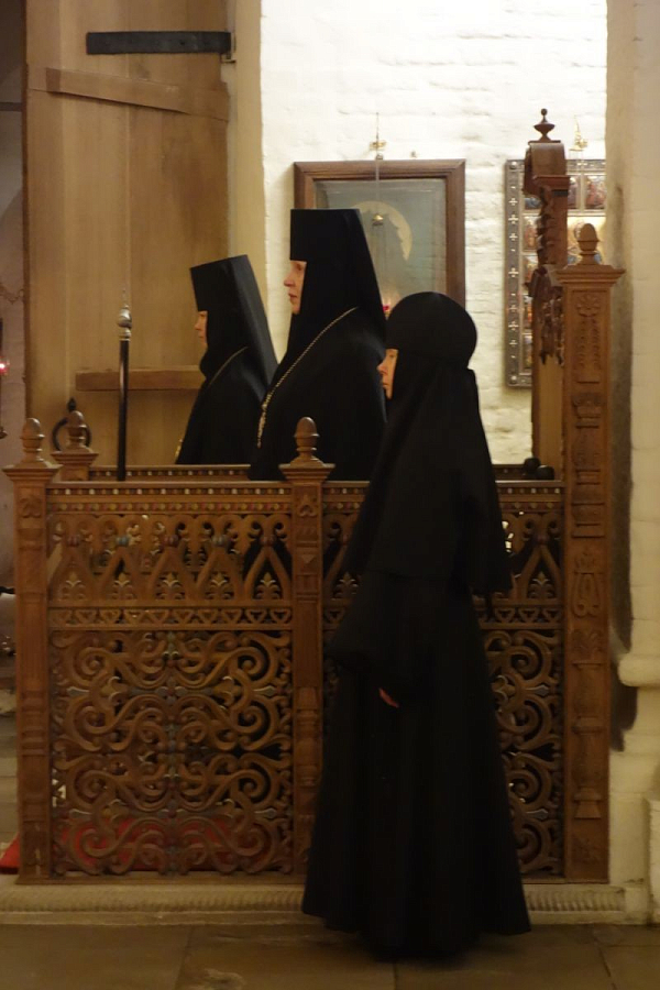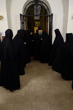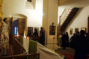 За богослужением молились: настоятельница монастыря игумения Викторина (Перминова); Заместитель Председателя Синодального отдела по монастырям и монашеству, настоятельница Зачатьевского ставропигиального женского монастыря игумения Иулиания (Каледа); сестры и прихожане обители.
