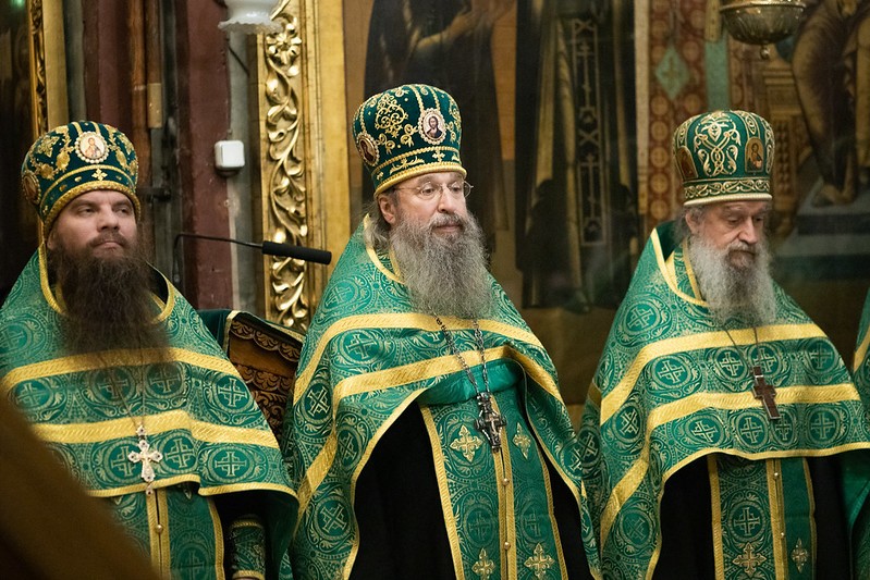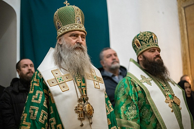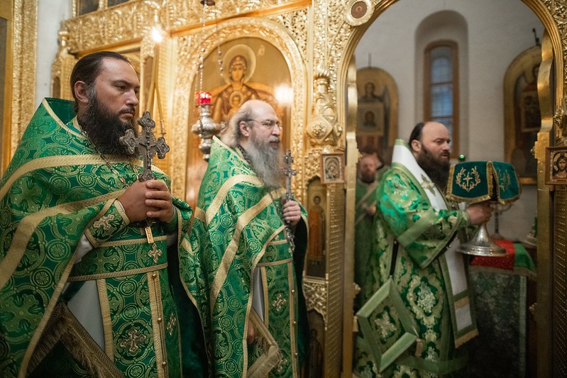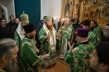 Преосвященнейшим владыкам сослужили пресс-секретарь Синодального отдела по монастырям и монашеству, наместник Московского подворья Введенского ставропигиального мужского монастыря Оптина пустынь архимандрит Мелхиседек (Артюхин), наместник Саввино-Сторожевского ставропигиального мужского монастыря архимандрит Павел (Кривоногов), братия Лавры в священном сане.