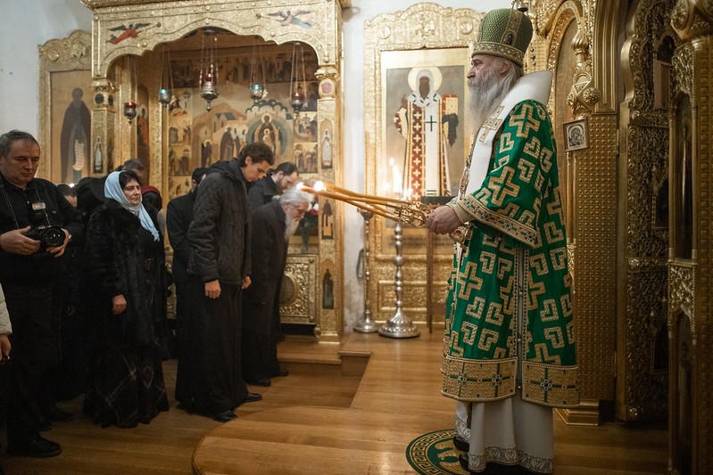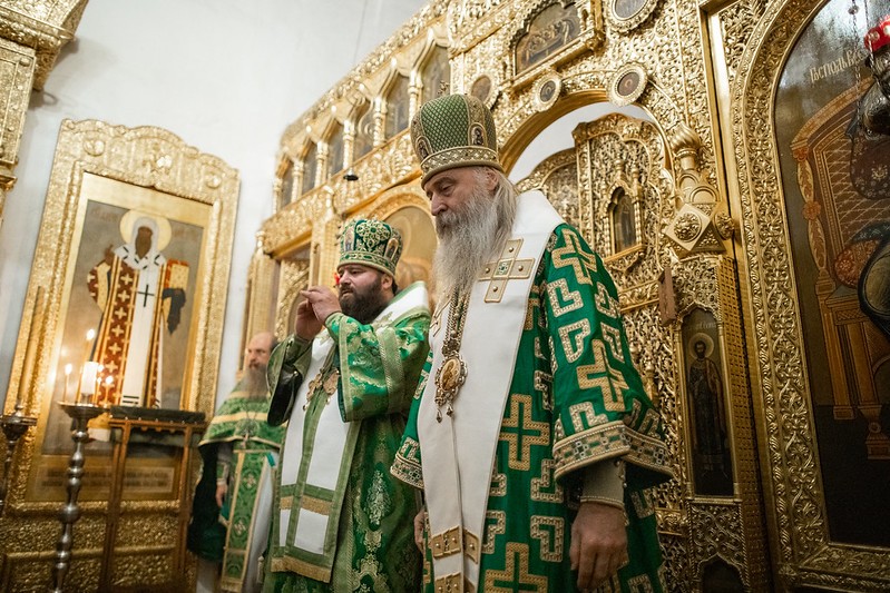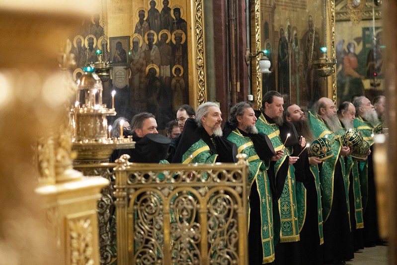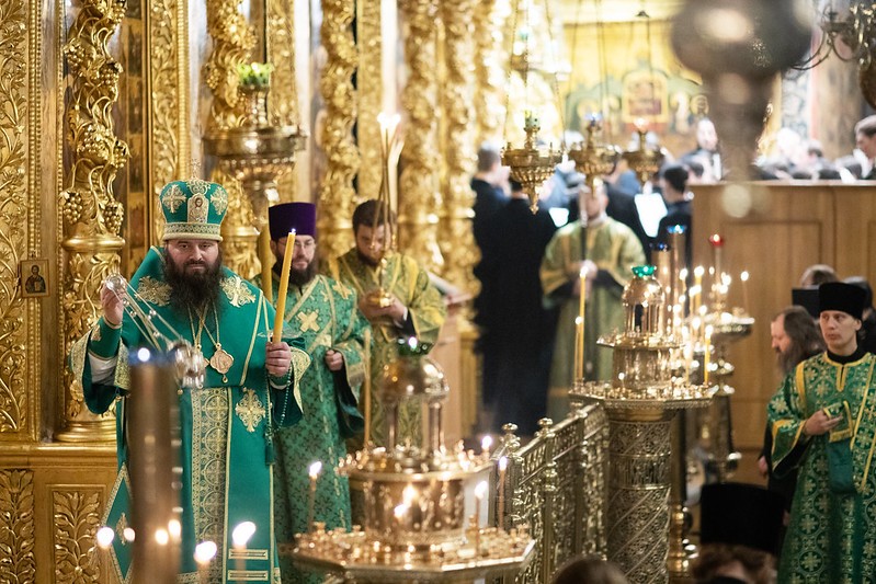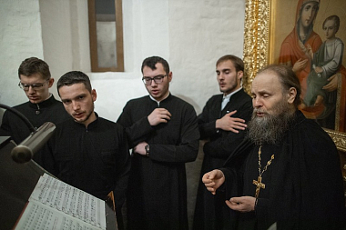 Церковные песнопения исполнил знаменный хор Лавры под управлением иеромонаха Зиновия (Бубякина).