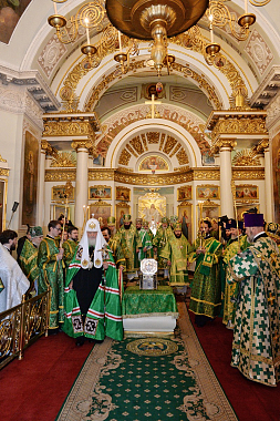 По окончании Литургии Святейший Владыка совершил славление и прочитал молитву у мощей преподобного Силуана Афонского.