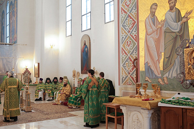 Раннюю Божественную литургию совершил архиепископ Сергиево-Посадский Феогност, Председатель Синодального отдела по монастырям и монашеству.
