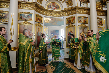 Его Святейшеству сослужили: митрополит Истринский Арсений, первый викарий Патриарха Московского и всея Руси по г. Москве; епископ Воскресенский Савва, наместник Новоспасского ставропигиального мужского монастыря Москвы; епископ Бронницкий Парамон, наместник Донского ставропигиального мужского монастыря Москвы; протоиерей Владимир Диваков, секретарь Патриарха Московского и всея Руси по г. Москве; архимандрит Алексий (Поликарпов), наместник Данилова монастыря; архимандрит Филарет (Булеков), заместитель председателя Отдела внешних церковных связей Московского Патриархата; протоиерей Олег Воробьев, благочинный Даниловского округа, настоятель храма Живоначальной Троицы на Борисовских прудах; насельники монастыря в священном сане.