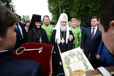 У ступеней храма Предстоятеля Русской Православной Церкви встречали: настоятельница Покровского ставропигиального женского монастыря игумения Феофания (Мискина); руководитель Департамента национальной политики и межрелигиозных связей г. Москвы В.И. Сучков; префект Северо-Западного административного округа А.А. Пашков; глава управы района Строгино В.В. Коновалов. Святейшего Владыку также приветствовали учащиеся православной гимназии в Троице-Лыкове.