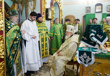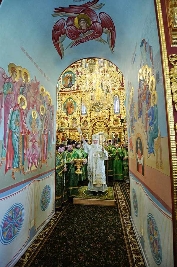 В храме Живоначальной Троицы Его Святейшеству сослужили: архиепископ Солнечногорский Сергий, руководитель Административного секретариата Московской Патриархии; епископ Бронницкий Парамон, наместник Донского ставропигиального монастыря, управляющий Северным и Северо-Западным викариатствами г. Москвы; протопресвитер Владимир Диваков, секретарь Патриарха Московского и всея Руси по г. Москве; архимандрит Савва (Тутунов), заместитель управляющего делами Московской Патриархии; протоиерей Георгий Крылов, благочинный Успенского округа Северо-Западного викариатства г. Москвы; протоиерей Андрей Марущак, клирик Храма Христа Спасителя г. Москвы; столичное духовенство.