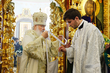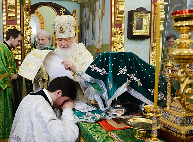 За Литургией Святейший Патриарх Кирилл рукоположил диакона Андрея Секрия, клирика Покровского академического храма, помощника проректора Московской духовной академии и семинарии по воспитательной работе, во пресвитера.