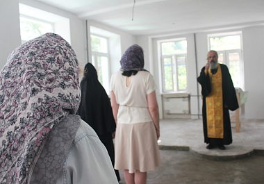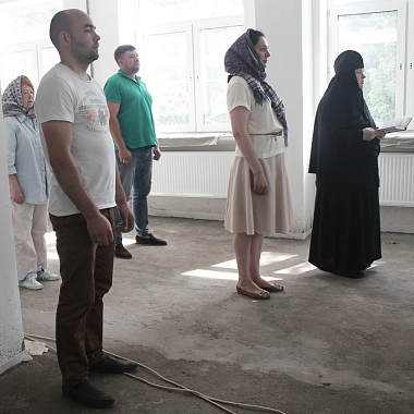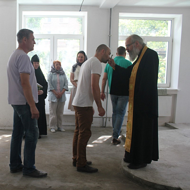 Богослужение совершил клирик Марфо-Мариинской обители милосердия протоиерей Александр Дубинин. На молебне присутствовали сотрудники Развивающего центра и специалисты, осуществляющие ремонтные работы здания.