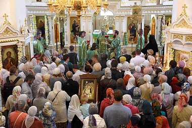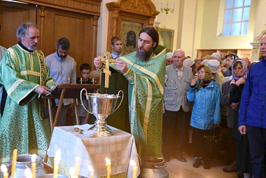 По окончании богослужения состоялся крестный ход, после чего всем присутствующим была предложена праздничная трапеза.