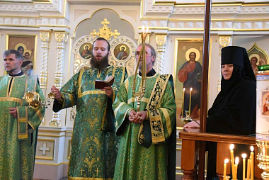За Литургией молились настоятельница Пюхтицкого Успенского ставропигиального женского монастыря игумения Филарета (Калачева) с сестрами.