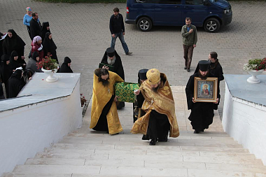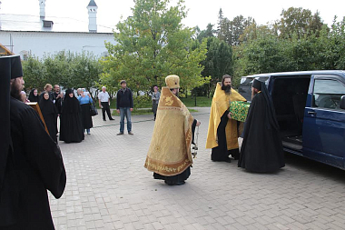 Ковчег с частью мощей был принесен в монастырь 14 сентября. У ворот обители святыню встречали наместник монастыря архимандрит Сергий (Воронков) с братией.