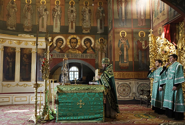 Праздничную Божественную литургию в Успенском соборе монастыря возглавил архиепископ Каширский Феогност, председатель Синодального отдела по монастырям и монашеству.