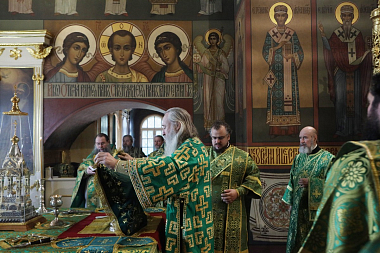 Его Высокопреосвященству сослужили наместник Иосифо-Волоцкого ставропигиального мужского монастыря архимандрит Сергий (Воронков) с братией, наместник Воскресенского Ново-Иерусалимского ставропигиального мужского монастыря архимандрит Феофилакт (Безукладников), наместник Саввино-Сторожевского ставропигиального мужского монастыря архимандрит Павел (Кривоногов).