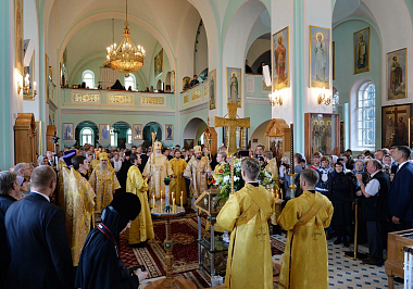 На богослужении присутствовали полномочный представитель Президента Российской Федерации в Северо-Западном федеральном округе А.Д. Беглов, губернатор Санкт-Петербурга Г.С. Полтавченко, председатель Законодательного собрания Санкт-Петербурга В.С. Макаров.