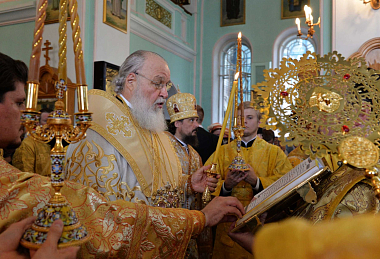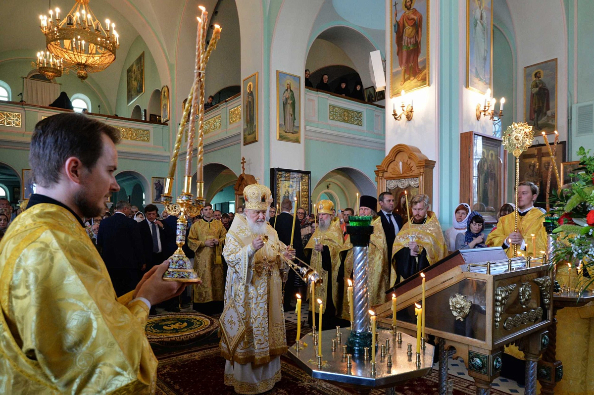 После полиелея Святейший Патриарх Кирилл поздравил верующих с праздником: