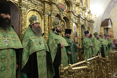 За Всенощным бдением молились: схиархимандрит Илий (Ноздрин); архимандрит Павел (Кривоногов), благочинный Троице-Сергиевой лавры; игумения Иулиания (Каледа), настоятельница Зачатьевского ставропигиального женского монастыря Москвы, Заместитель Председателя Синодального отдела по монастырям и монашеству; игумения Викторина (Перминова), настоятельница Богородице-Рождественского монастыря Москвы, член Комиссии Синодального отдела по монастырям и монашеству; игумения Сергия (Щербакова), настоятельница Казанской Амвросиевской ставропигиальной женской пустыни в Шамордино; братия Оптиной пустыни; насельницы Казанской Амвросиевской женской пустыни, 25-летие восстановления монашеской жизни в которой отмечается в этом году; многочисленные паломники.