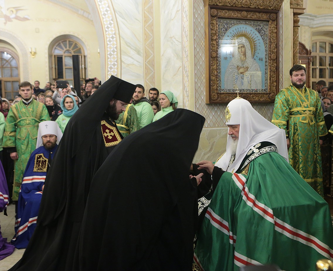 По окончании Всенощного бдения Святейший Патриарх Кирилл возглавил чин наречения архимандрита Тихона (Шевкунова) во епископа Егорьевского и архимандрита Антония (Севрюка) во епископа Богородского.