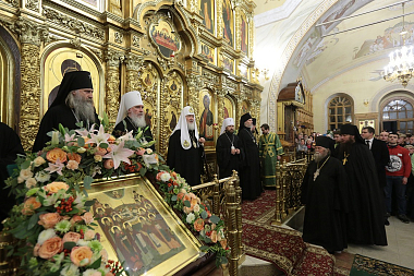 В дар Оптиной пустыни Святейший Владыка передал икону преподобного Кукши Печерского. Каждому из насельников обители были вручены художественно изданные Евангелия для келейного чтения.