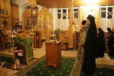 Накануне престольного праздника в храме была отслужена малая вечерня с пением акафиста преподобному Оптинскому старцу, затем совершено всенощное бдение.