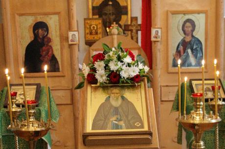 В сам день праздника перед иконой с частицей мощей преподобного Сергия пропет акафист святому.
