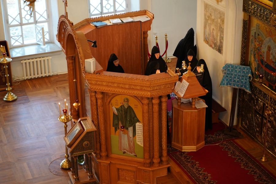 Праздничные богослужения начались накануне малой вечерней с пением акафиста Покрову Царицы Небесной и всенощным бдением.