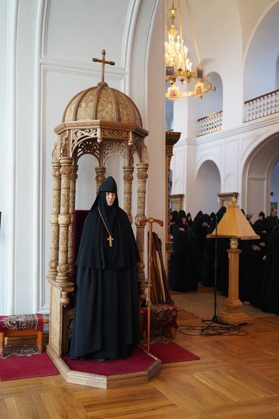 Игумения Сергия (Щербакова) поздравила Преосвященного епископа Леонида с праздником Покрова Матери Божией и поблагодарила за торжественную Литургию. В знак признательности и любви о Господе матушка преподнесла владыке святую просфору и картину с видом монастыря.