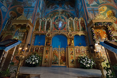 В храме хранятся святыни: ковчег с мощами святых и крест-мощевик, к которым дети любят прикладываться во время службы. Иконостас здесь особый – с удивительно красивыми иконами. По обеим сторонам Царских врат устроены большие открытые пространства, которые дают возможность детям заглянуть внутрь алтаря. Такого «прозрачного» иконостаса больше нет нигде. Благословение на необычную работу, как и на все строительство, дал наместник Троице-Сергиевой Лавры архиепископ Сергиево-Посадский Феогност.
