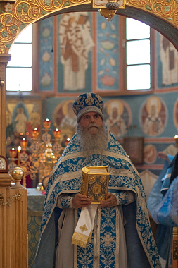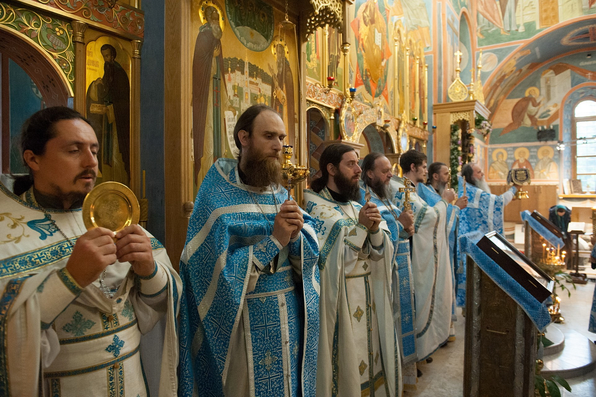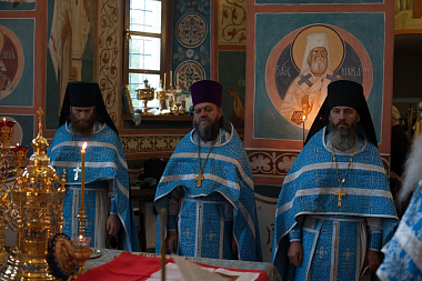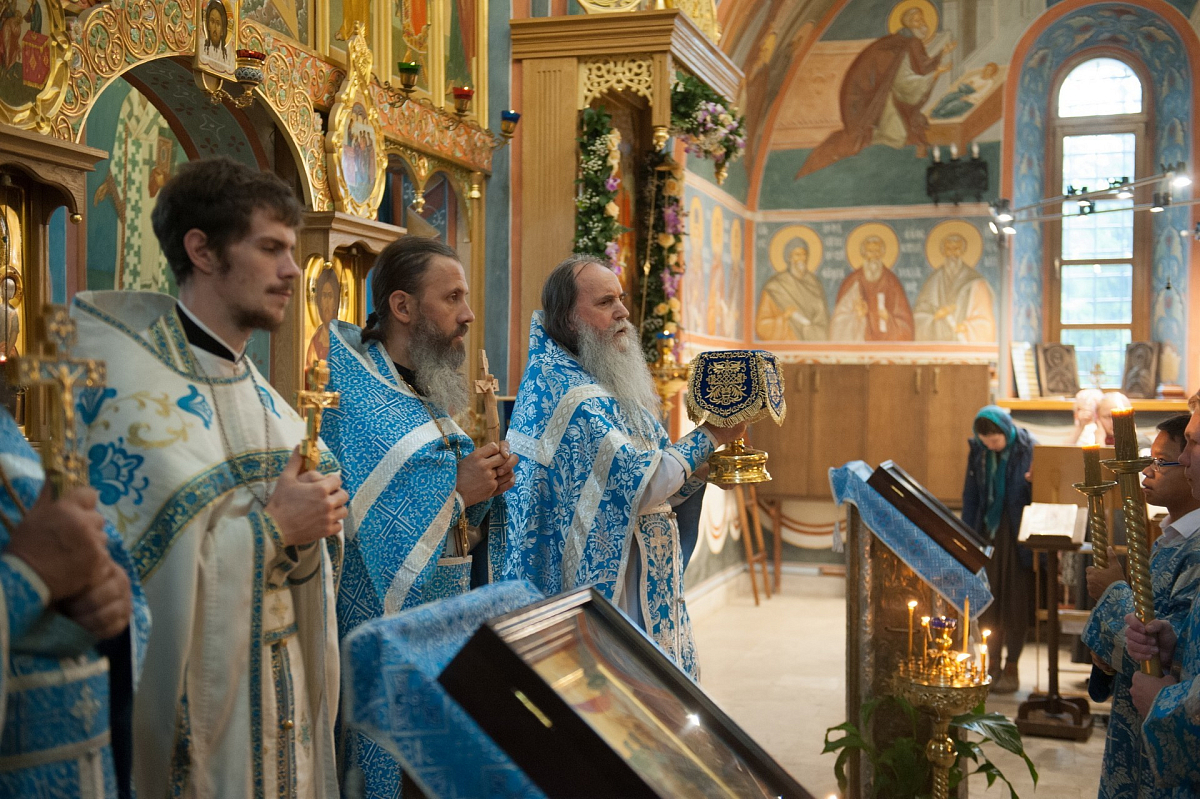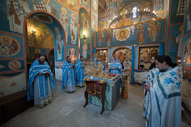 Его Высокопреподобию сослужили: настоятель храма в честь Явления Пресвятой Богородицы преподобному Сергию Радонежскому Лаврского подворья иеромонах Феофилакт (Кириллов), насельник Троице-Сергиевой Лавры, руководитель Информационной службы обители иеромонах Феодор (Силицкий), клирики этого храма иереи Александр Пивняк, Александр Семенов и Евгений Веселов.