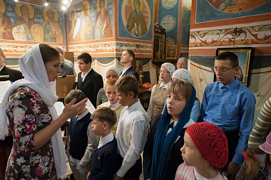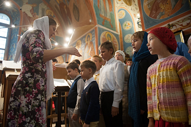 За Литургией молились персонал учреждения, воспитанники дома-интерната, а также маленькие жители Сергиева Посада вместе со своими родителями и родственниками.