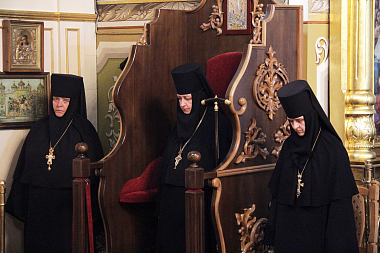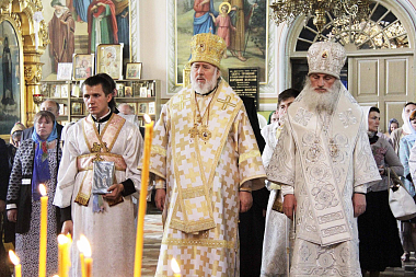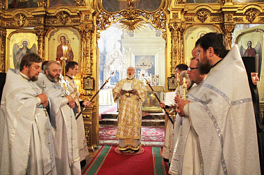 Его Высокопреосвященству сослужили: епископ Фастовский Дамиан, монастырское и приезжее духовенство.