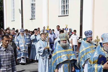 По окончании богослужения был совершен крестный ход с обнесением чудотворной Плащаницы Божией Матери вокруг храма.