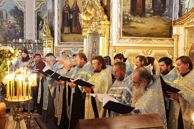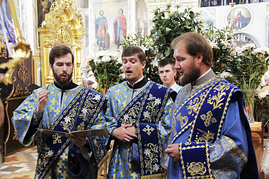 В сам день праздника были отслужены две Божественные Литургии: ранняя в Успенском приделе Троицкого храма и поздняя в Троицком храме, которую совершил митрополит Ириней в сослужении духовенства.
