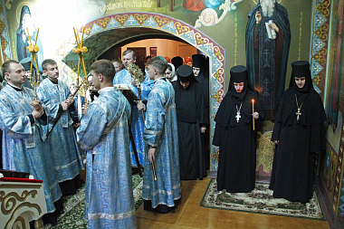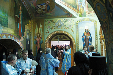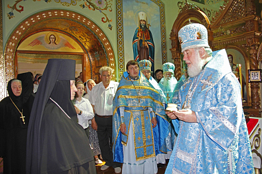 По окончании Литургии был отслужен праздничный молебен, после которого Его Высокопреосвященство произнес проповедь и поздравил игумению Рафаилу, всех сестер и богомольцев с настоящим торжеством.