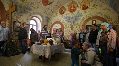 Затем был отслужен молебен с водосвятием и освящен мед нового урожая.
