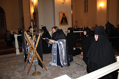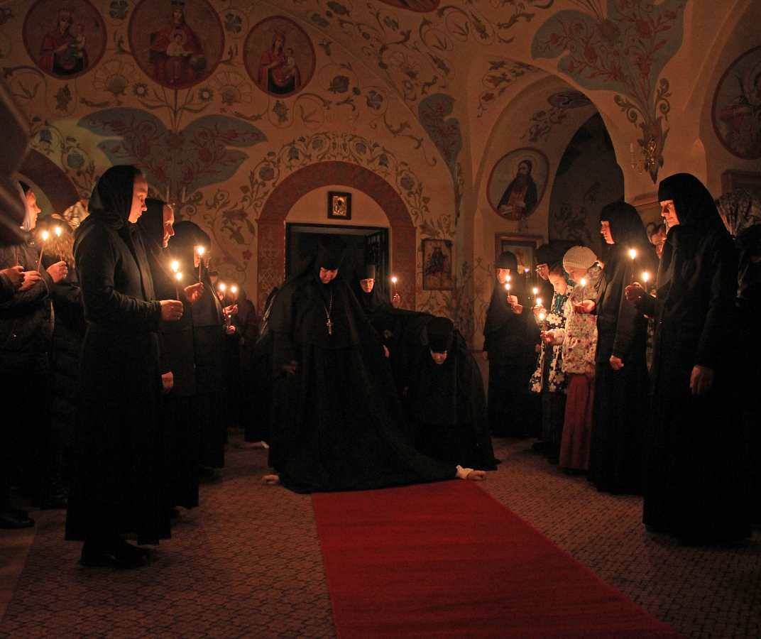 В этот день перед началом Великого повечерия настоятельница монастыря игумения Екатерина (Чайникова) обратилась к готовящимся принять постриг сестрам со словами наставления и благословила каждую из них иконой Пресвятой Богородицы.