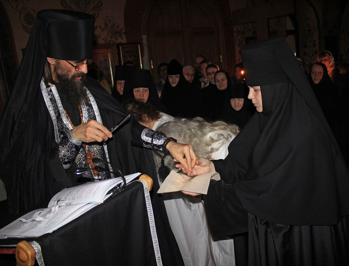 Во время пострига новопостриженным были даны новые имена в честь преподобной Марии Египетской и мученицы Иустины.