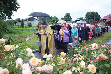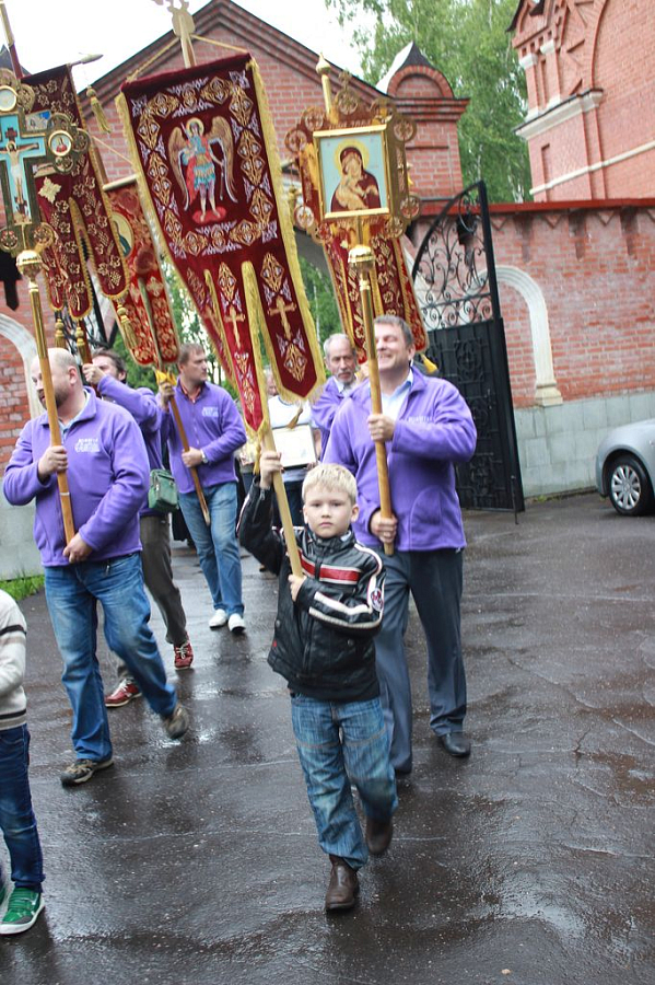 По окончании Божественной литургии был совершен праздничный крестный ход вокруг монастыря, во время которого хоругви несли волонтеры монастыря, а также маленькие прихожане.