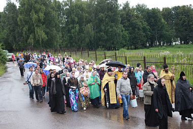 «Возлюбленные отцы, дорогие братия и сестры, я всех вас рада приветствовать в этот день в нашем монастыре, во множестве собравшихся за этим торжественным и важным для нашей обители богослужением, потому как в праздник Сергия и Германа Валаамских, вчерашним днем, был освящен этот монастырь в 1887 году. И в память об этом событии всегда совершался крестный ход.