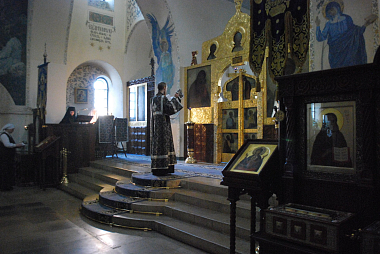 Житие преподобной Марии Египетской читал старший священник монастыря иерей Тихон Кречетов, которому сослужили во время богослужения протоиерей Александр Дубинин, иерей Дионисий Денисов и иерей Тихон Кречетов.