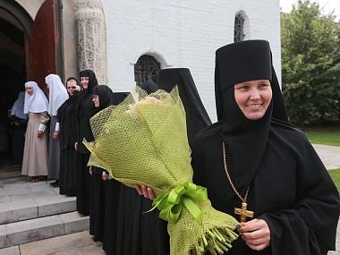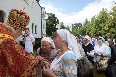 В Покровском храме Обители была совершена праздничная Божественная Литургия, которую возглавил епископ Орехово-Зуевский Пантелеимон. После совершения крестного хода Его Преосвященство передал матушке игумении Елисавете Патриашее поздравление с днем Ангела:
