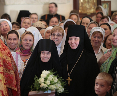 В подарок от Святейшего Патриарха Кирилла игумении Елисавете была преподнесена икона Пресвятой Троицы. Вручая подарок, епископ Пантелеимон высказал пожелание: «Я думаю, что молитва Пресвятой Троицы поможет, дорогая матушка, всем нам соединиться в мире, любви, единомыслии, подобно Богу, Единому в Троице».