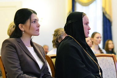 С вступительным словом выступила настоятельница Марфо-Мариинской обители игумения Елисавета (Позднякова).